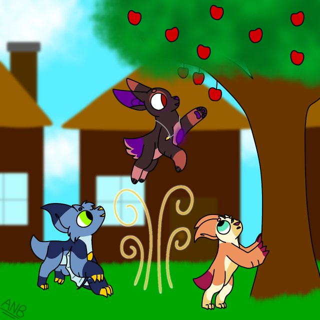 Hailey went over to the little tree that was planted in town and came across two other drakens, Phoebe and Torro. When Hailey leaned in to touch the tree, she was pricked by a splinter.Phoebe belongs to Crada324