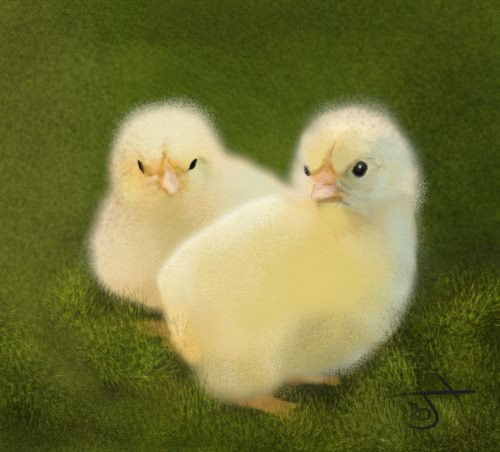 Your gallery is great! I really like your drawing style, especially on this piece. You've handled the chicks' feathers really well.