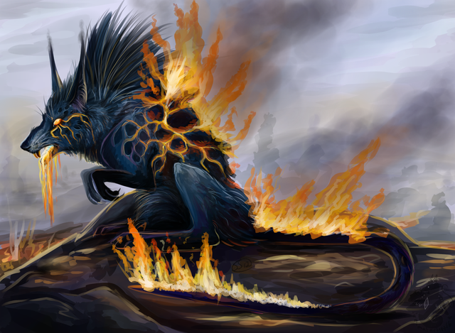 Wow, the splatters make this really dynamic and eye-catching! Love the texture of the fur, especially up in its ears~!