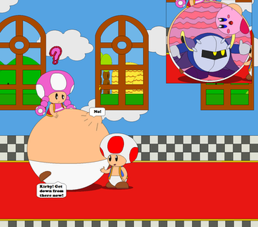Bruiser: (gets very happy) YAY, PUNCHING BAG! (punches Captain Toad with his friends)