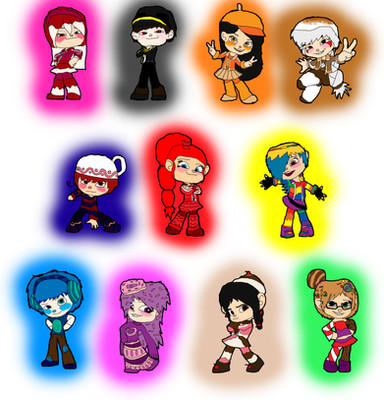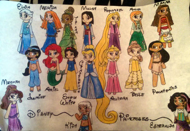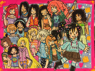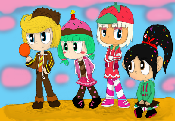 Okay so, I'm going back to Disney pretty soon and was motivated to combine two of my favorite things, Sugar Rush and Disney Princesses. Here's what I got lol. I tried to match each character with either: Hair style/color, Personality or anything else.Starting in the top left corner, here they are: