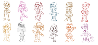 These are characters for a rp. I drew this as a reference not a fan art. ok great thanks. (so yeah made 2 more. whoops)I will give you their names starting from left to right