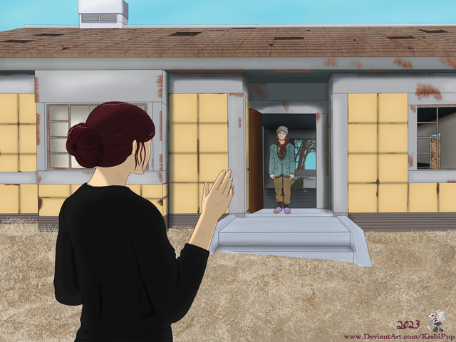 I had this image in my head when I wrote this scene (and while listening to "Pig"), so I definitely wanted to create this as the scene art for the chapter! It took me some time to play with shadowing (and I still think I have a ways to go in terms of shading/shadowing), and this was my second time trying to play with flames while recreating the look that was shown in-game. I think I still need to play with my new cloud brushes, but overall I'm really pleased with how my new brushes helped me create this piece!!
