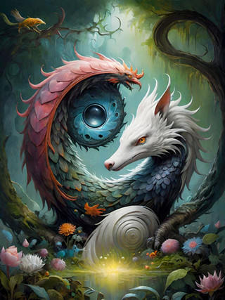 AI has a very magical way of identifying and representing Snakes. Snakes and Snake coils can often be represented as halos, as seen embedded in this image by Midjourney. This is because of the circular geometry associated with the curvature of a Snake and the mathematical image recognition algorithm and process. They are very difficult to draw, even for a human artist, and often AI can create these serendipitous errors and artifacts that look like optical illusions and halos made of Snake coils.Wolf and Snake are sssame animal!!!