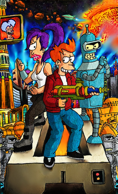 I wanted the foreground and background to be blurry to help with the sense of speed. Guess I succeeded. Did you see the Professor, Bender, Amy, and Dr Z?