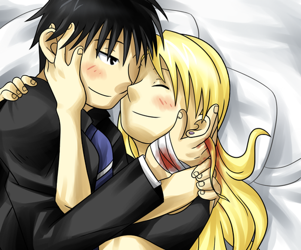 For the longest time I've actually wanted to do something where Roy was pressing some of Riza's hair to his face... Maybe he's kissing it idk. I'm just happy it's finally done XD