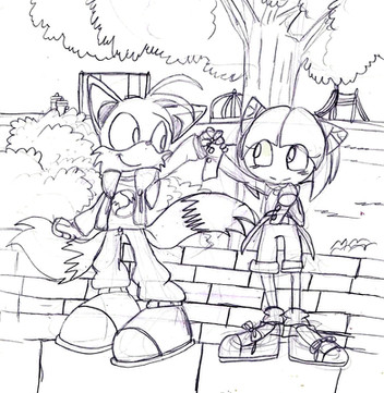 Every once in a while I feel compelled to draw a part of Tails’ past. Usually I end up with a picture of him around two or three years old with his parents, when they were still alive. Sometimes I decide to go further, and draw Rosemary and Amadeus as teenagers. This is one of those times.Rosemary, Tails’ mom, comes from a decent household, (she’s probably my only character that does) and isn’t judgmental at all. She reminds me of myself; she’s definitely NOT girly, but she’s not opposed to girlish stuff, she just isn’t comfortable with it. She’s not really a tomboy either, but she certainly dresses like one. (I usually draw her in a hockey jersey) When she first met Amadeus she didn’t know what to think of him---