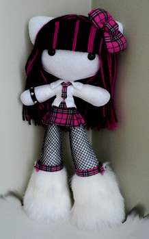 I absolutely love these plushies you make~! I love the way you use yarn in the hair to create that cyber-goth look
