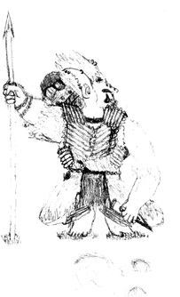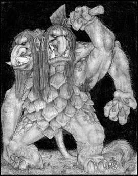 This is another monster for the books!!! Is some king of a giants or an ogre!!The creature he have under his foot and on his hand are small wolf!!Related content