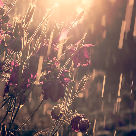 This is so lovely. I love the bright colours andd the way the droplets catch the sunlight and how the drops that are out of focus almostlook like glitter. Very fresh and pretty