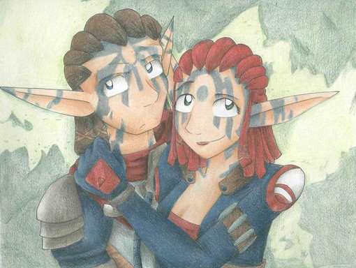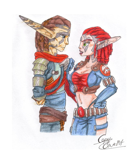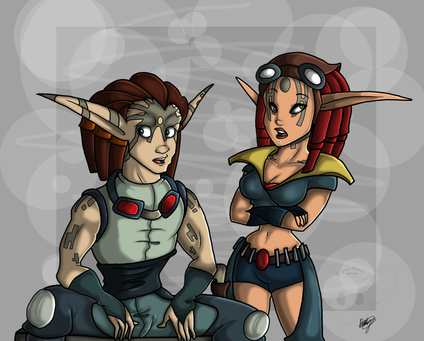 Torn and Ashelin of the Jak and Daxter gamesThey were drawn by hand and scanned, then everything else was done in PS 6.0