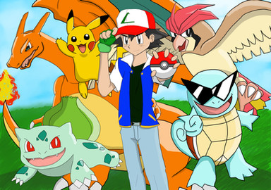Ash used to be awesome like in this pic, but then he let all of his pokemon go except pikachu and he even got rid of his friends and replaced them 3 times.. What a jerk.. Haha. I miss the old ash and his old pokemon wahhhh