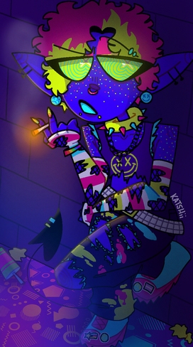 I made a ref for my belovedAnyways, Razor is a little gremlin but sheβs very nice to everyone she meets! She loves to design clothes and she has her own business. Her species is called Neonies, and their typically known for being artistic and energetic!