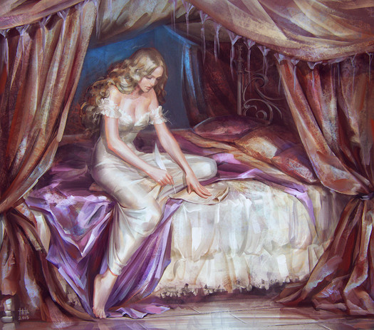 The flow of everything, especially the bedsheets and her hair is really amazing-- you are very talented
