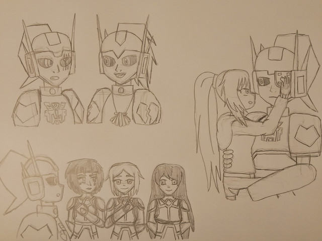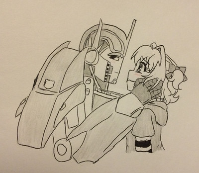 okay, hmmm...well my oc should have long untamed hair and wearing a sweater with long pants and should be next to maybe a Cherry Blossom Tree and I'll have to think on what Transformer.