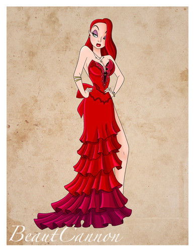 Mrs. Jessica Rabbit in both of her outfits from "Who Framed Roger Rabbit"--the sparkly pink-ish red dress she performs in, and her plain red dress.Β Fun fact: she was supposed to wear only the sparkly dress throughout the movie, but the sparkles were hard to animate, so she only wears it when she is first introduced on stage, then wears the non-sparkly dress for the rest of the movie. (Edited the red dress to remove the sparkles)Made with Pinup Jessica Β game