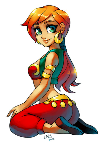 A beautiful dancer indeed! I love the genie-like style you've given her, it is something I'm fond of wearing myself, that exotic type of style. Very pretty red-head she is, too! Can't go wrong with that. Thanks for sharing this awesome artwork! Totally going to fave it.