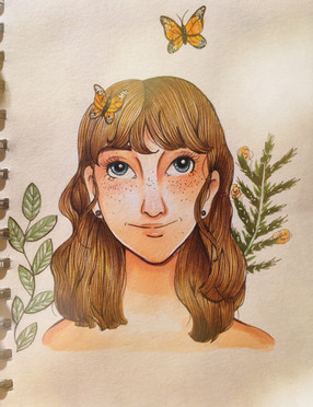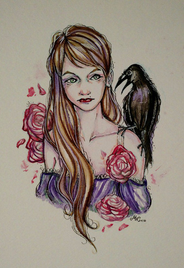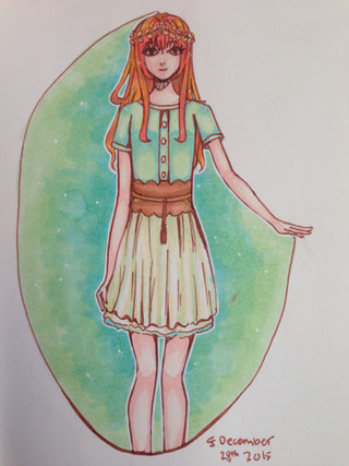 #blonde #dress #girl #ink #pinkhair #portrait #postcard #traditional #tree #watercolor #woman #washitape #watercolour