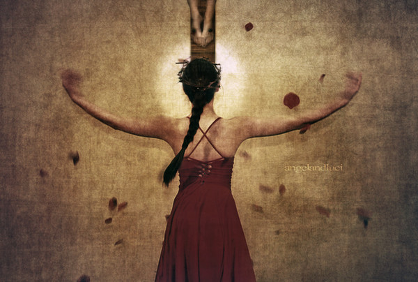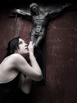 nothing is more sexy than a crucified girl especially in velvet' love to see her in a long loincloth between her legs and hold up by a velvet belt around her waist , a you can se her vagina just covert by the velvet loincloth, next time you make a shot of a naked female being crucified take some red velvet with you and put it on her ,love to by the print satin is not bad but velvet is my favourite material no one is using velvet in crucifying so you be the first who knows what will happened it may be a hit lots of people like it , if you cant get red then any velvet will do thanks for reading my letter ,