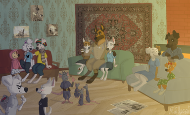 #2020 #anac #anthro #avian #band #bear #bird #bunny #cat #couch #diana #eagle #furry #furryart #house #hyena #lil #lilliane #livingroom #lockdown #quarantine #retro #sleepover #tambor #tv #vintage #wolf #zarah #ikuk #anahronic