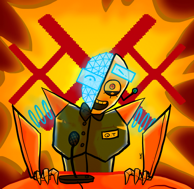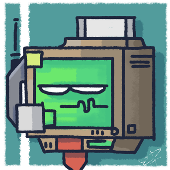 Confession: Before I got big into Trivia Murder Party, I was into Mad Verse City. Never had watching people making some of the more ridiculous rhymes made me laugh.I present to you a drawing of Gene, the AI player, as he appears there.