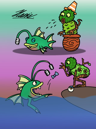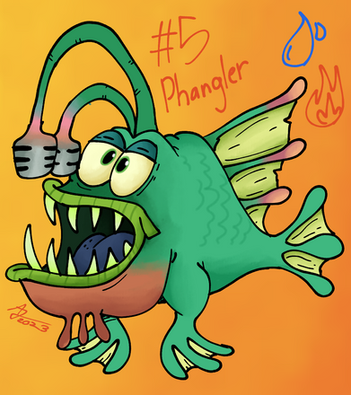 I went and drew a Phangler. Also, the background behind it is supposed to be Fire Oasis. I think got the essence of it.Enjoy.