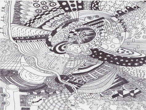 The high art of the fine art doodle. I love this piece. Would love to see it in color pencil.