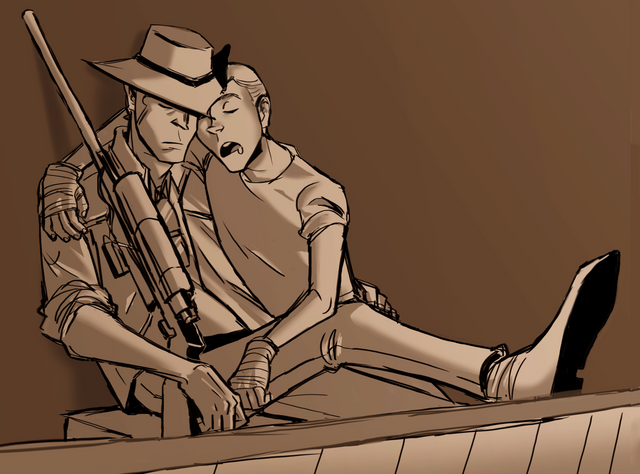 XD On missions he BACKpack. Make reports about spys, tells stories, warm sniper`s back and kisses his ear.
