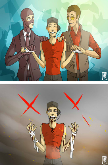 Oh, well that's just silly. Other's get killed, but Scout has to be tormented, because... he's a Scout. Enough said.