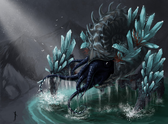 The color palette balances nicely between the warm orange tones and the cooler shadows; the lava outlines its forms well but still leaves enough of the shape to the imagination that it lends a mysterious, dramatic quality to the piece. Everything about this is incredible; I love it!