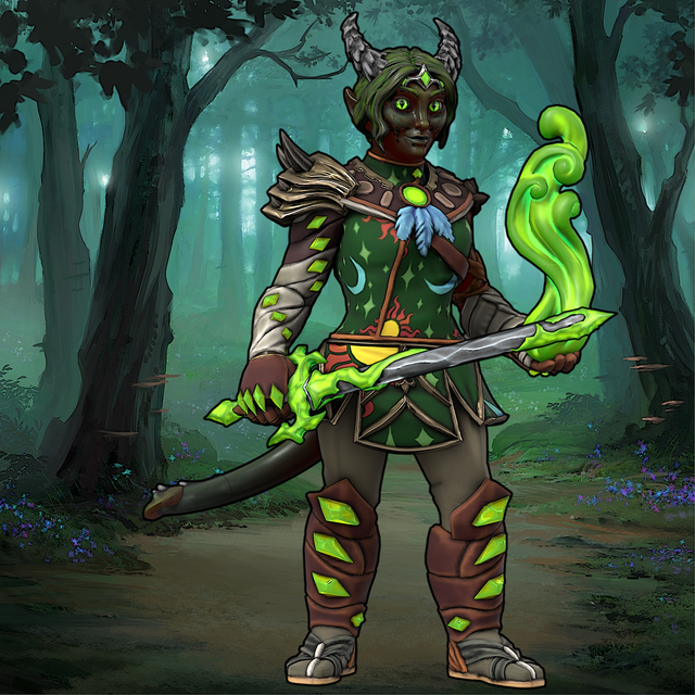 "As a born tiefling, Yvari was born with some innate spellcasting ability, not a lot, but enough that she could be set apart from most her peers. She was also privileged with an ancestral aptitude for magic due to her bloodline again, but she quickly learned to have control over sorcerer powers. She became incredibly proficient in her powers, using them for everything she could, never needing lifting a finger if a mage hand could do it, never turning down a light if thaumaturgy could do it. She managed to avoid most of the ridicule of being a tiefling on account of her parents being well-liked and also knowing how to socially manipulate any situation to benefit their daughter.This was never enough for her though, and she began seeking other forms of magical power. She had no willingness for the devotion of the monastic life of a cleric, nor the determination to make a Paladin's oath. It was in her attempts to gain the powers of a wizard (something she was not intelligent enough to ever conceivably obtain) she heard rumours of the Warlock. Warlocks were not commonplace in her life, and most were considered to be outlanders, or even cultists to unknown power; but the prospect of just being given more power interested Yvari, so she began to seek them out.