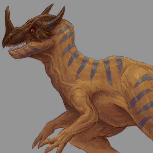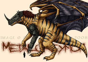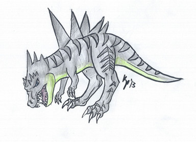 Yes, yes, it's a digimon, shuttup. x) In fact, there's four of these, so stay that way.Greymon was the first one I drew - for those not sad enough to know offhand what he looks like, here's Wikipedia's image . He was done almost entirely from memory, so his markings aren't accurate, and I'd totally fethed up his horns until I edited it in Photoshop. x) Yes, I know the rest of it isn't accurate either, but as I said - I'm going for something in my style that's maybe a little more realistic.