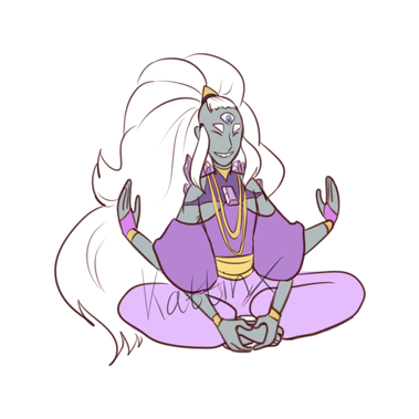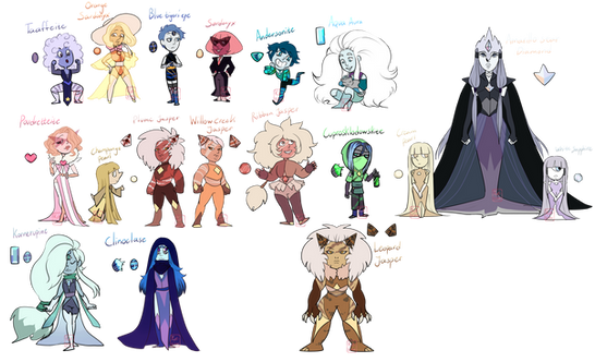 Oh my, They look like an oni! Looks great. Maybe the gem could be Color Changing Diaspore?