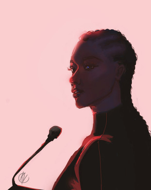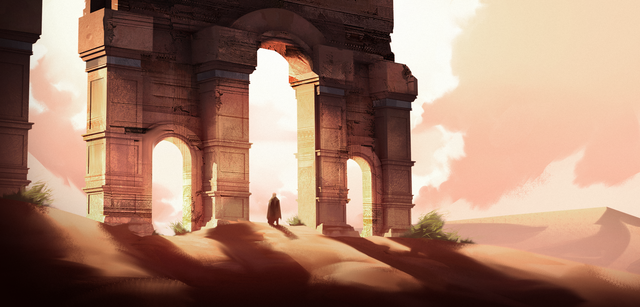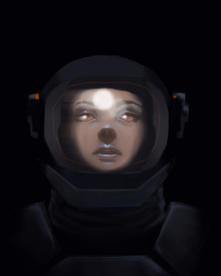 A pilot with her spaceship, landed on a strange world. Tried to focus on the feeling in stead of detail.Some thoughts on art: