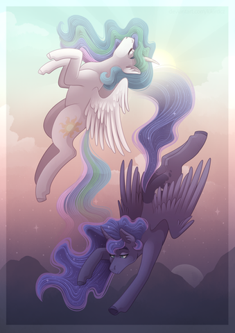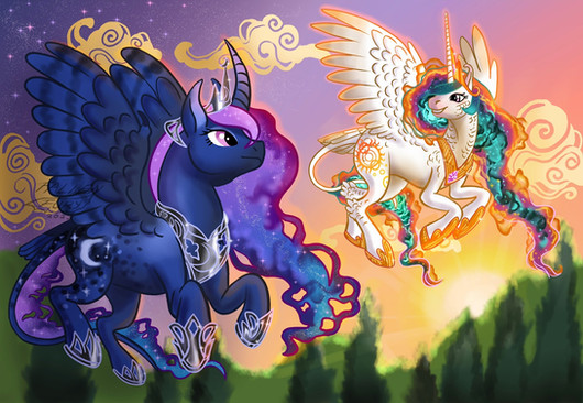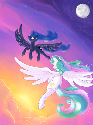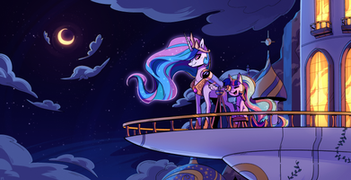 #crown #fim #mlp #princess #sisters #sunset #castle #flying #mountains #night #river #stars #waterfall #princessluna #mylittleponyfriendshipismagic #princesscelestia #canterlot