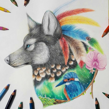 I was scrolling through newly added drawings and saw a picture of a wolf howling. I thought, "How cool would it be if the howl were visual." and BAM! Not much further along I find this! So much flowing swirling colorful beauty!