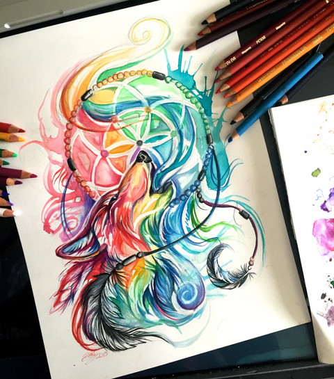 #drawing #pack #pretty #rainbow #surreal #wolf