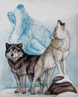 This is beautiful. Well done. I like the base colors you used for each wolf, they blend well as a pack.