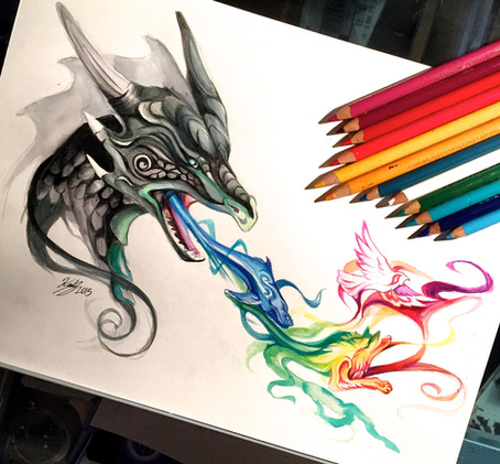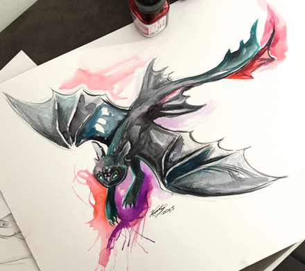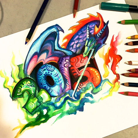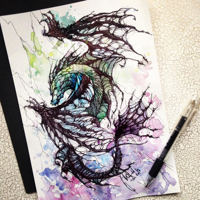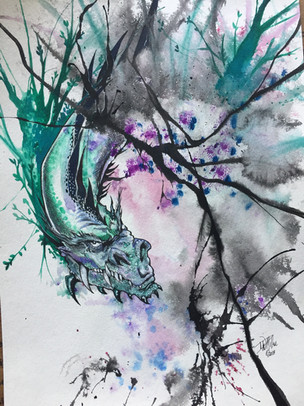 A watercolor dragon design!Facebook: www.facebook.com/KatyLipscombA…