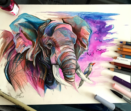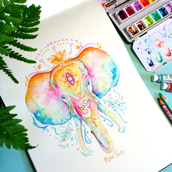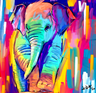 The wisps of color around the elephant make this look so magical!