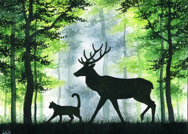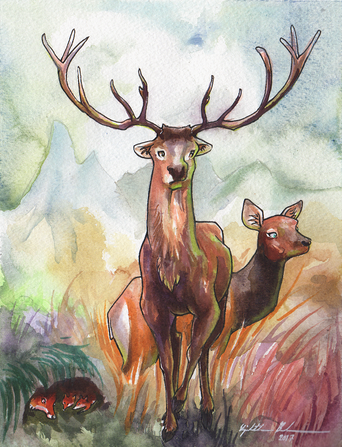 This is just absolutely beautiful - I love the colours and how elegant and gentle these deer look