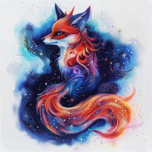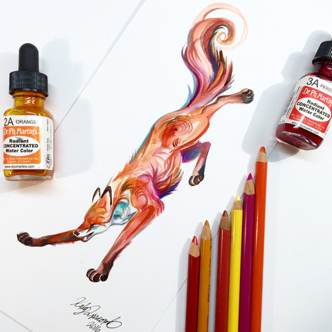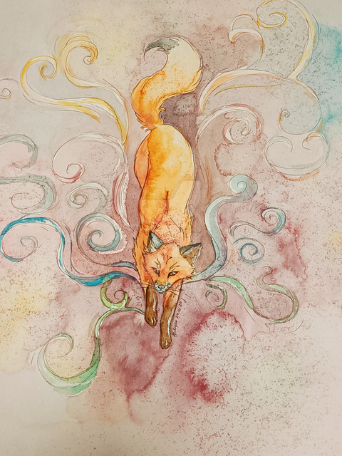 #fox #illustration #jumping #leaping #rainbow #watercolor #coloredpencil #swirlywedgie