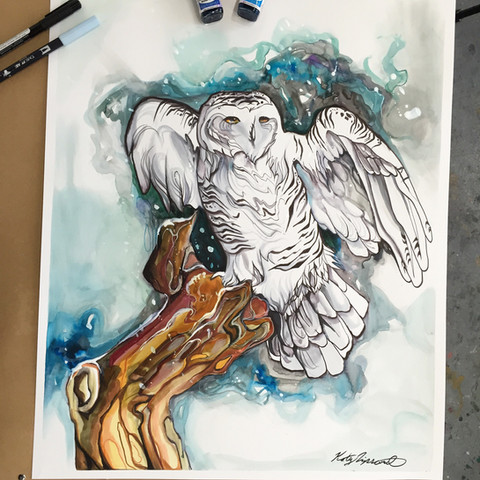 Lovely! I really like the coloring, and how some of the color is coming from the owl's eyes. Also, the owl itself looks real nice. This looks awesome, nice work!