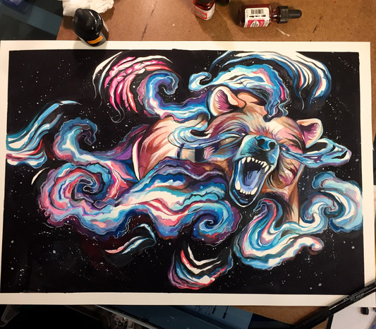 The right side of a larger watercolor semi-realistic chest piece design. The teeth and a few other features are slightly exaggerated to the commissioner's liking.This is ONLY for the commissioner's personal use.