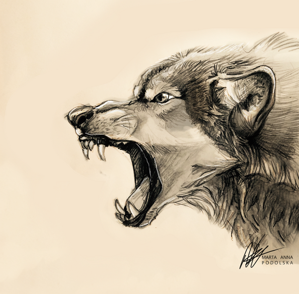 I really love this. I'd just like to note; when wolves snarl, their lips curl outward, so there would be more black at the edge of the mouth.