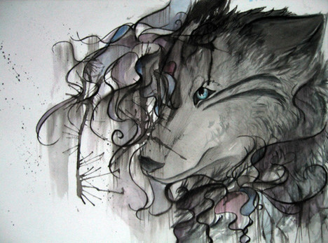 I see the butterflies in this piece as the workers who sort of operate the clock in the corner. The wolf is calling to them, but the clock can also be seen as a stand in for the moon...just a whimsical concept without much sense driving it (: