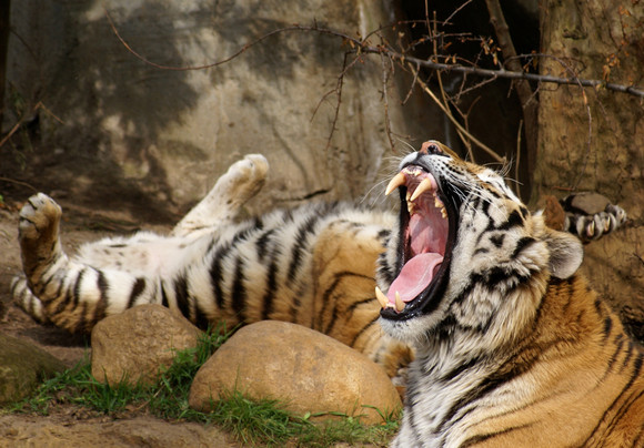 It looks as if the tiger is saying: "Oh dear man-cub, if only you knew how much trouble you'd be in if it were not for this glass between us..."