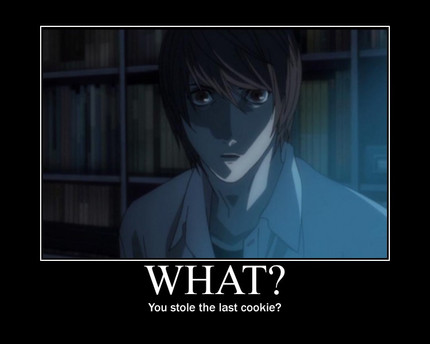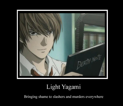XD, funny im checking ur gallery n.n, i hate that chapter light loses his mind plus he gets killed thats a pretty tough day on kiras life XD, but kira is justice although he went too far with killing so many good people n.nU