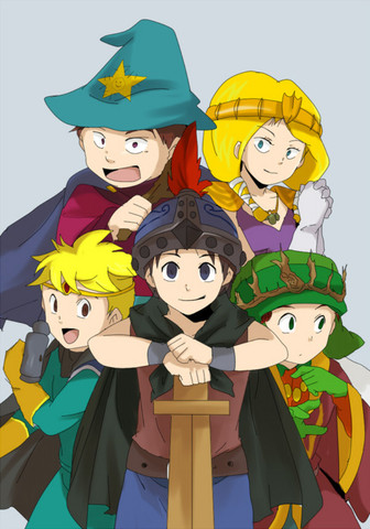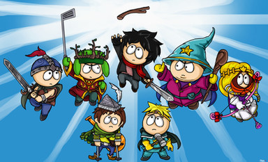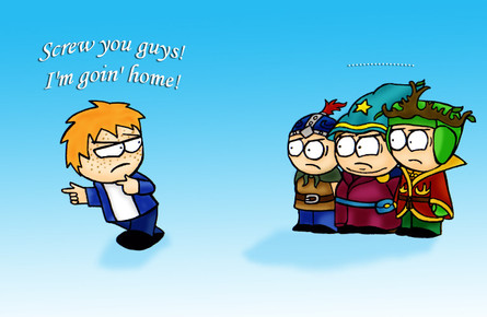 This is just a little thing I imagine would happen if the two keeps tried to make a permanent peace treaty. Cartman and Kyle have been arguing for hours and most of the other kids have lost interest and are just kinda doing their own thing. The red haired kid is my character from the game in his original warrior gear.