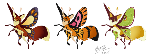 a species i made up for fun haha fox/mothkinda goofy but... i might try some more alternate color palettes and adopt them out if people are interested? also feel free to make your own if you so desire!